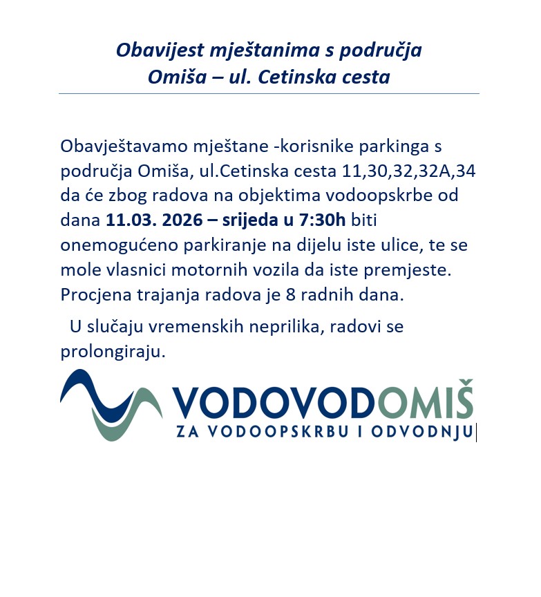 OBAVIJEST VODOVOD OMIŠ